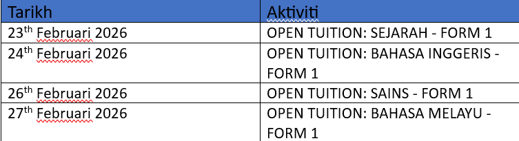 Jadual Open Tuisyen